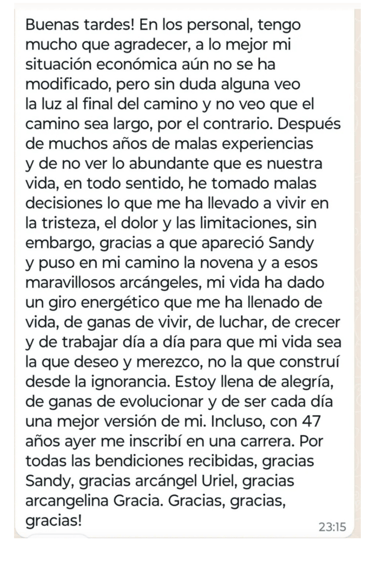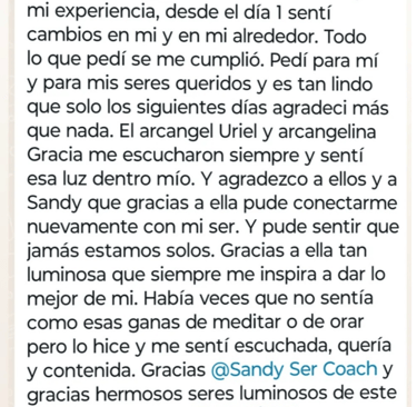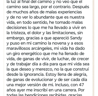 En todo este viaje, he aprendido y aplicado las claves del universo, como vivir una vida desde la consciencia más elevada, a conectarme con la abundancia, a crear relaciones sanas y duraderas aplicando las leyes universales y sobre todo, me he curado del espasmo bronquial.